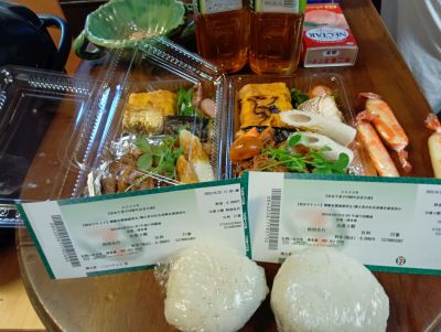 今日は博多座で行われる”水谷千重子50周年記念 公演”に夫婦2人で行って来ます。海ママが張り切って 新幹線の中で食べるお弁当を作ってくれました。 |