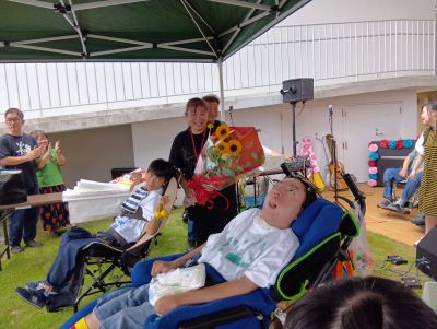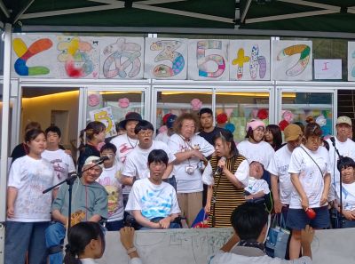 ダンスに歌あり。たくさんの人が参加してくれて、とっ ても盛り上がりました。 沖縄のエイサー、仲間のダンス、ボランティアの参加 もあり、家族や、地域の人もたくさん集まってくれました。 |