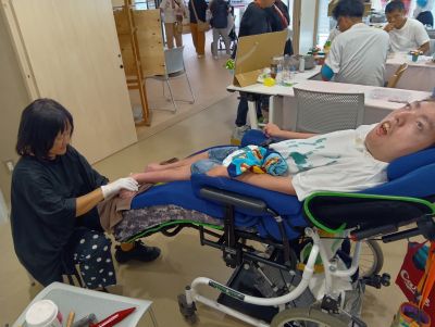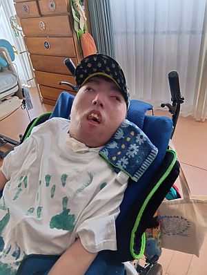 | おはようの男性支援員の千草さんが、和食どころ”昴”の厨房の方と何度も 食事形態を相談し、海くんでも食べやすいマグロ丼を事前に注文してくれました。 自分でブレンダーをかけるつもりでしたが、何と厨房でブレンダー後、一品ずつ きれいに盛り付けて提供していただきました。胃瘻からもすんなりと注入でき、海 くんもおいしいランチいただきました。色々準備をありがとうございます! |