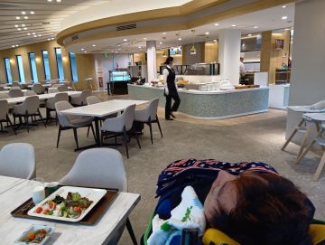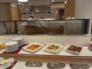 | 楽しみにしていた夕食ビュッフェ。左下はお刺身その他、右下はスイーツ。 |
