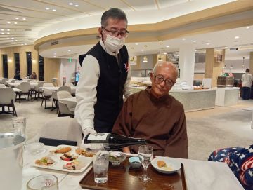 | 「海くん、ワインをどうぞ」と、海ママ。 |