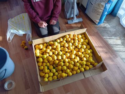 法面に植えていた柚子に今年も一杯実がなりました。実 は小ぶりですが、香りは素晴らしい。これを使って柚子味噌 、柚子ポン酢、柚子ジャムを作ります。 |
